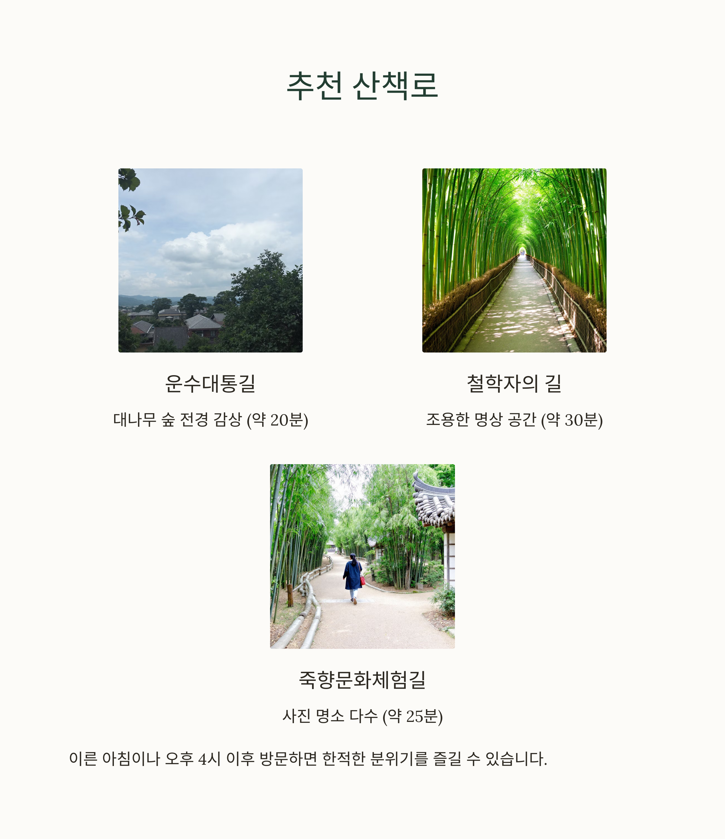 | 운수대통길 | 대나무 숲 전경 감상 | 약 20분 |