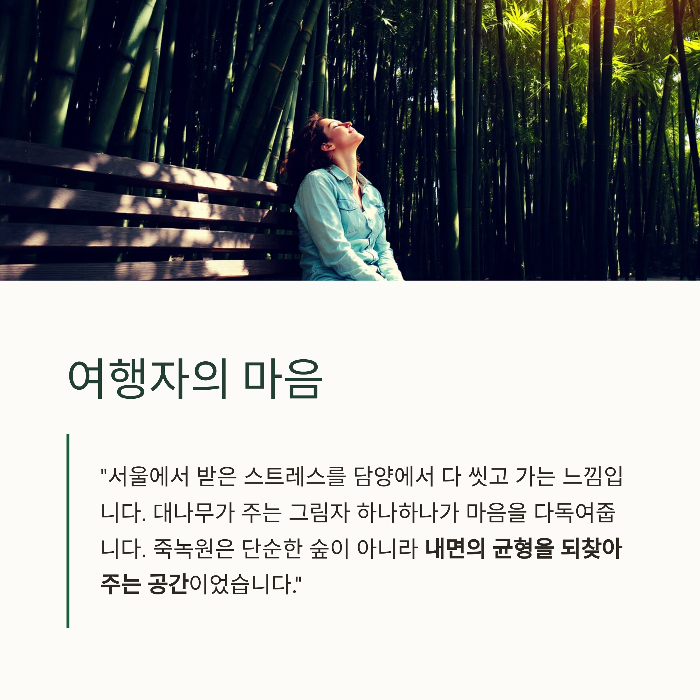 죽녹원은 단순한 숲이 아니라 내면의 균형을 되찾아주는 공간이었습니다."