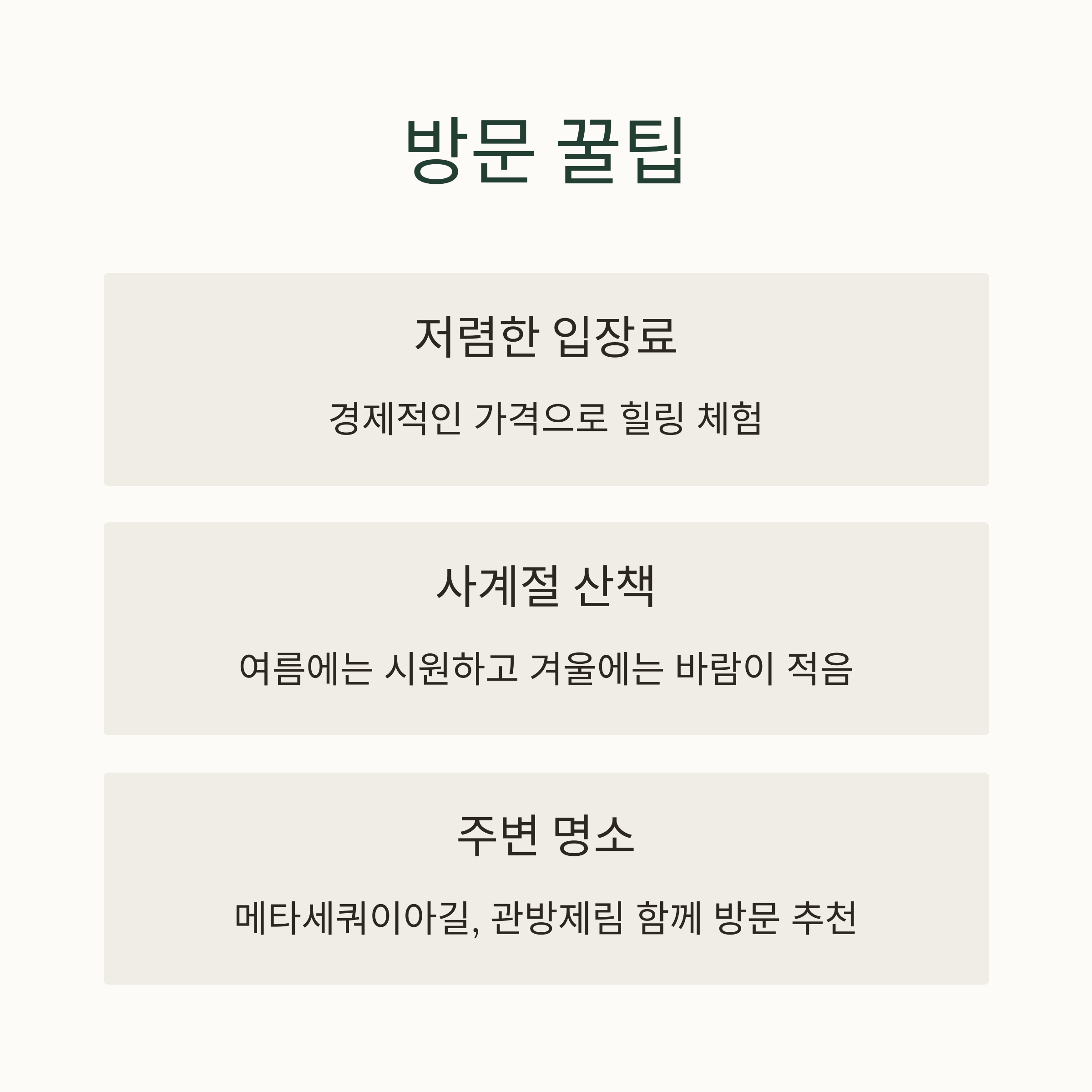 인근에 있는 메타세쿼이아길과 관방제림도 함께 둘러보면 더욱 알찬 일정이 됩니다.