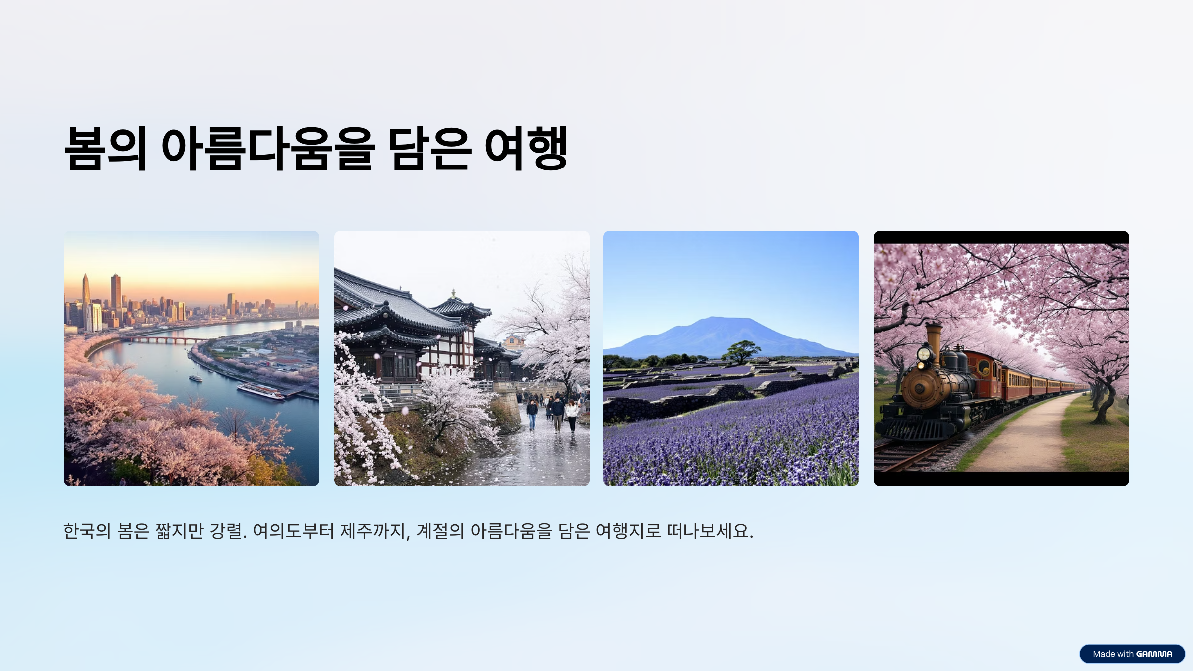 한국의 봄은 짧지만 강렬합니다. 여의도 벚꽃길부터 제주 유채꽃밭까지, 계절의 아름다움을 가득 담은 여행지를 지금 떠나보세요. 카메라를 들고, 가벼운 짐을 꾸려 봄을 마음껏 즐길 준비가 되셨나요?