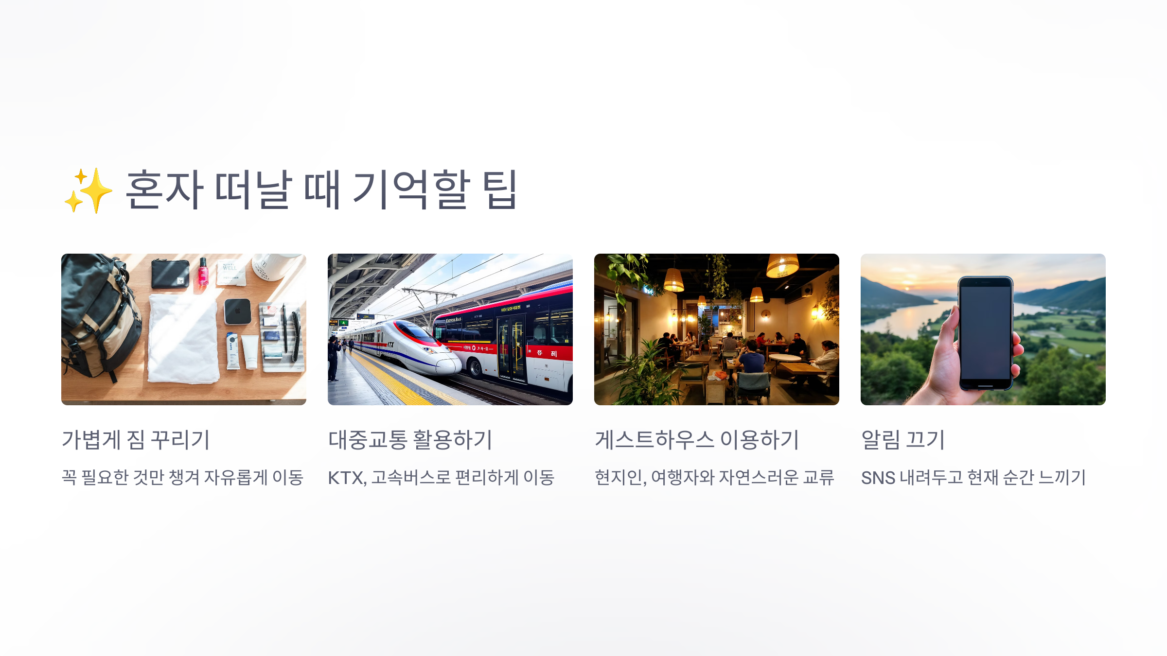 ✨ 혼자 떠날 때 기억할 팁: